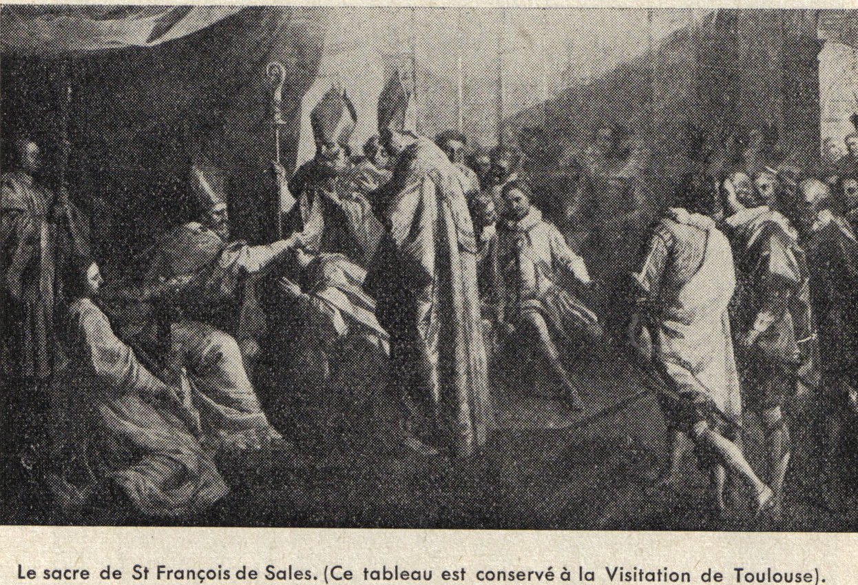 Bischofsweihe des hl. Franz von Sales am 8. Dezember 1602. Abbildung aus Annales Salesiennes 41,138; das Original befindet sich im Heimsuchungskloster von Toulouse, Frankreich.