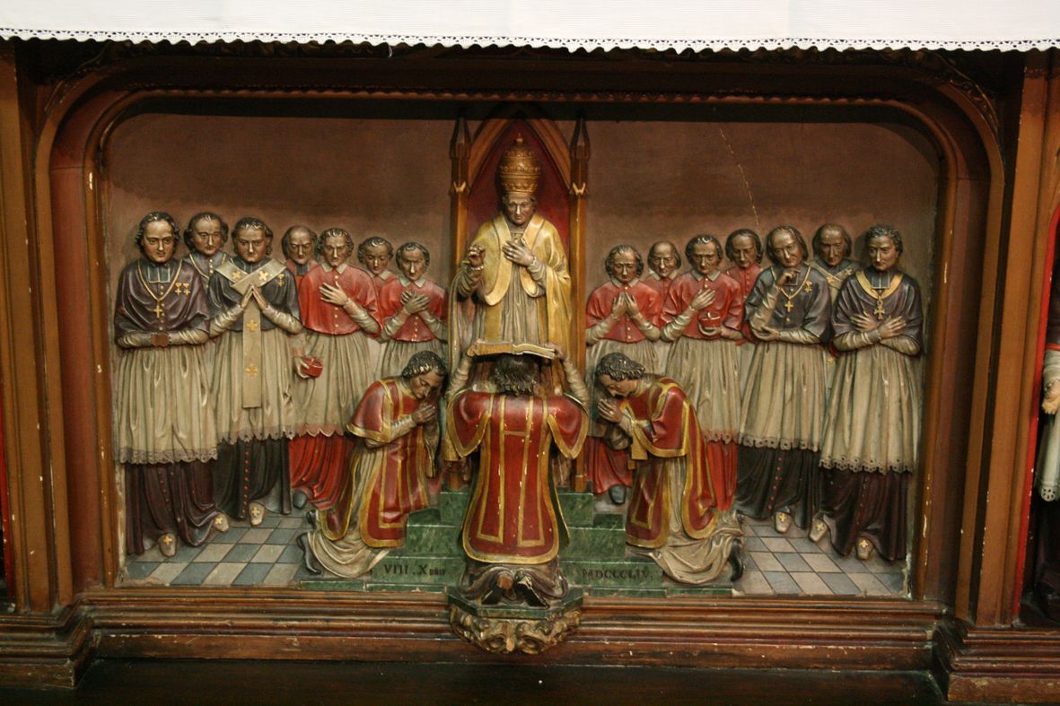 Dieses Relief an einem Seitenaltar der Kathedrale St. Pierre in Annecy, Frankreich, erinnert an die Heiligsprechung des hl. Franz von Sales 1665