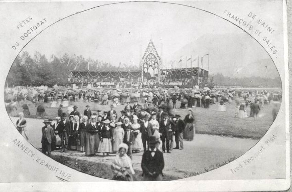 Feierlichkeiten zur Ernennung des hl. Franz von Sales zum Kirchenlehrer am 22. August 1878 in Annecy, Frankreich (die Ernennung fand 1877 statt)