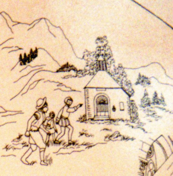 Franz von Sales als Jugendlicher mit seinen Brüdern: Ausschnitt aus einem Plakat über das Leben des hl. Franz von Sales in Les Allinges, Frankreich