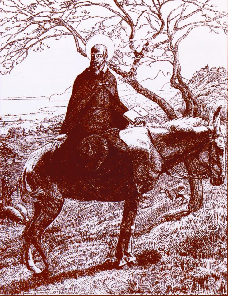 Titelseite eines Prospektes über Franz von Sales im Chablais. Stich von André Jacques 1935.