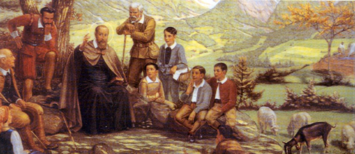 Franz von Sales lehrt im Chablais. Gemälde von Etienne Doucet in der Kirche Notre Dame in Nizza, Frankreich