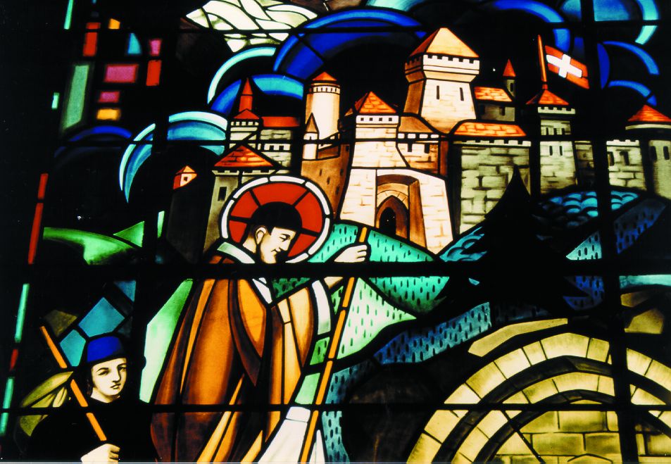 Franz von Sales im Chablais3: Ausschnitt aus Glasfenster in der Basilika von Annecy, Frankreich