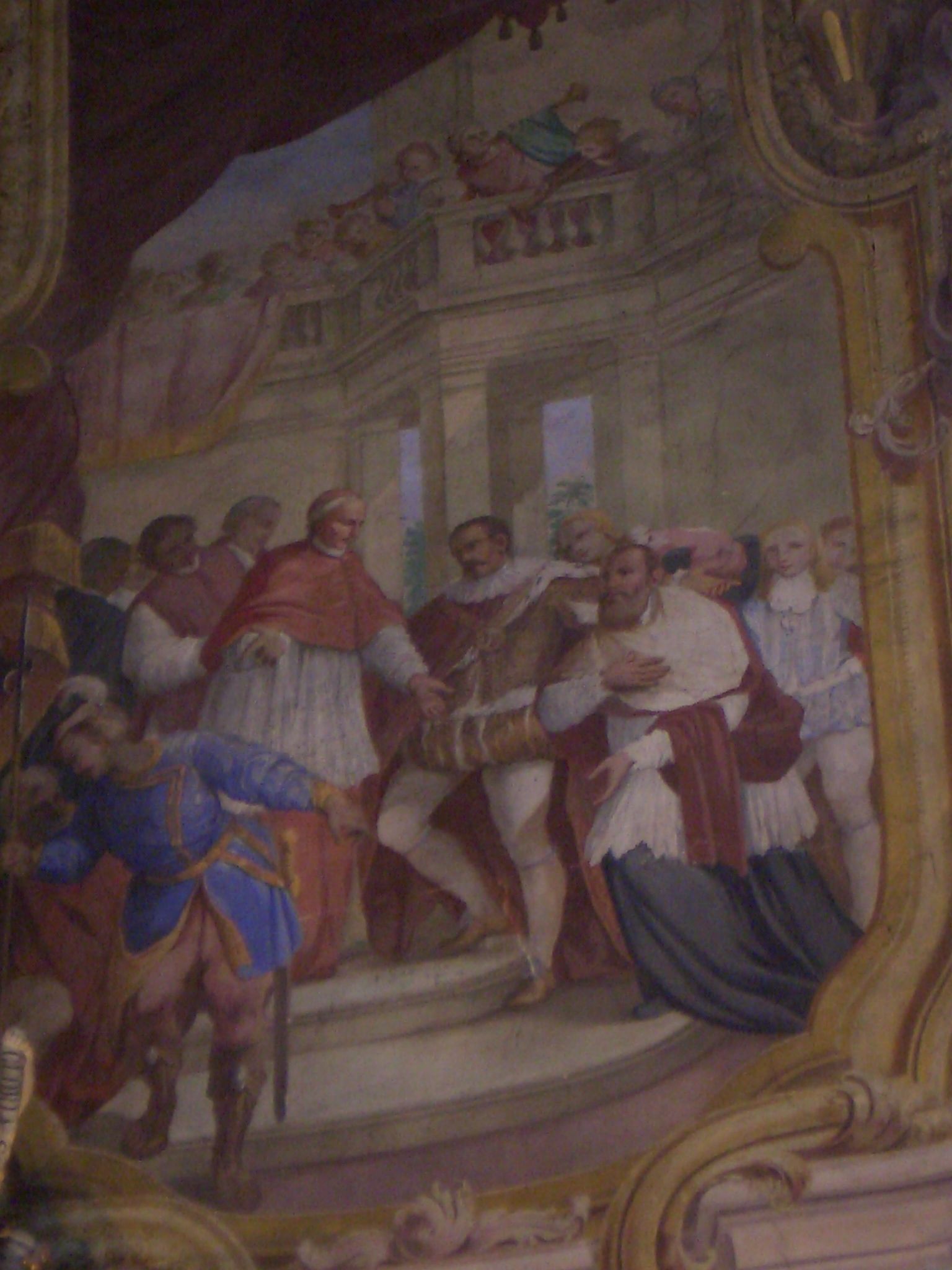 Besuch bei Papst Clemens VIII in Rom, Gemälde von Giacomo und Francesco Giovannnini in der Kathedrale von Asti, Italien.