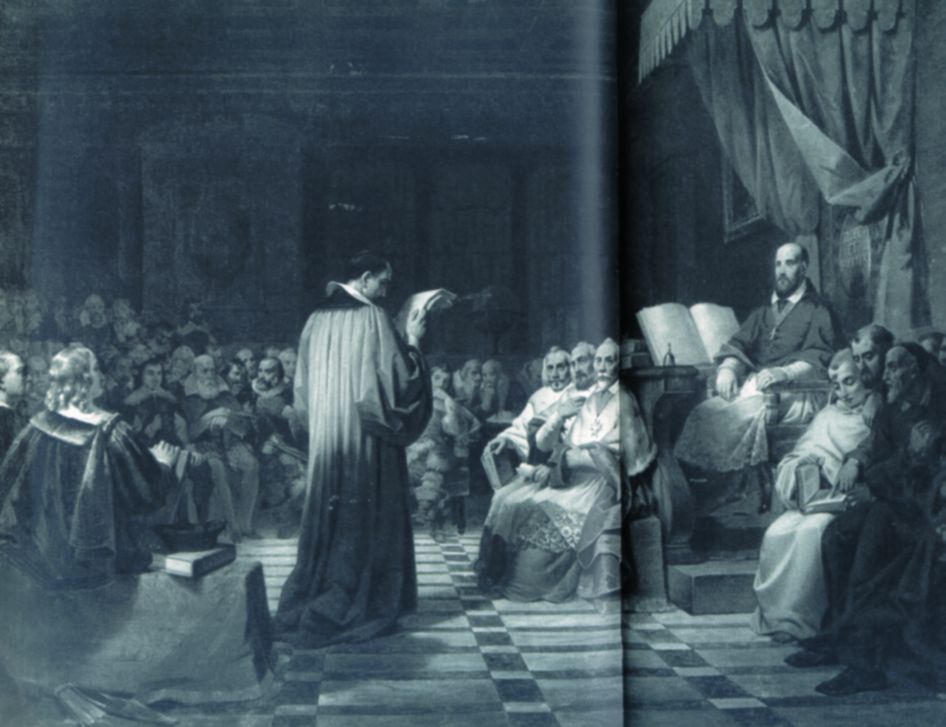 Franz von Sales und Academie Florimontane: Gemälde von Benoit Molin (1810-1894), Savoyardische Akademie, Chambéry, Frankreich