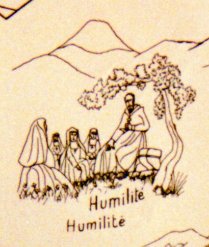 Ausschnitt aus einem Plakat über das Leben des hl. Franz von Sales in Les Allinges, Frankreich: Geistliche Gespräche im Garten des Hauses der Galerie