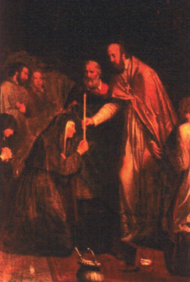 Franz von Sales überreicht einer Heimsuchungsschwester den Schleier. Gemälde in der Kirche Notre-Dame in Chambéry, Frankreich