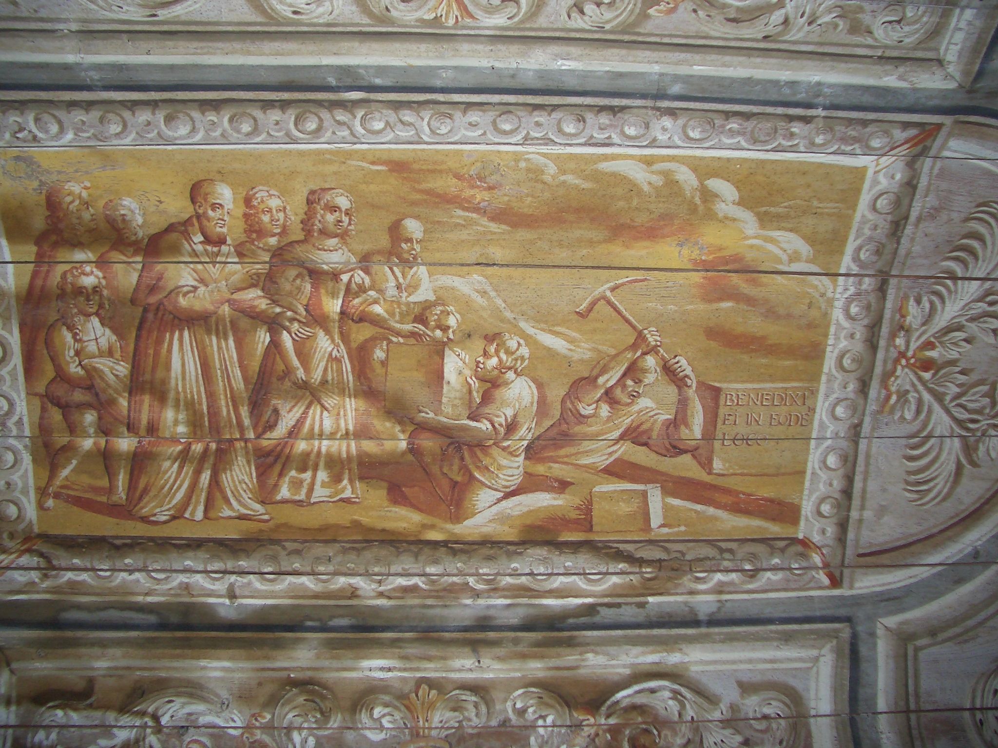 Franz von Sales beim Spatenstich zur Gründung des Heimsuchungsklosters von Grenoble. Gemälde im ehemaligen Heimsuchungskloster von Grenoble, Frankreich