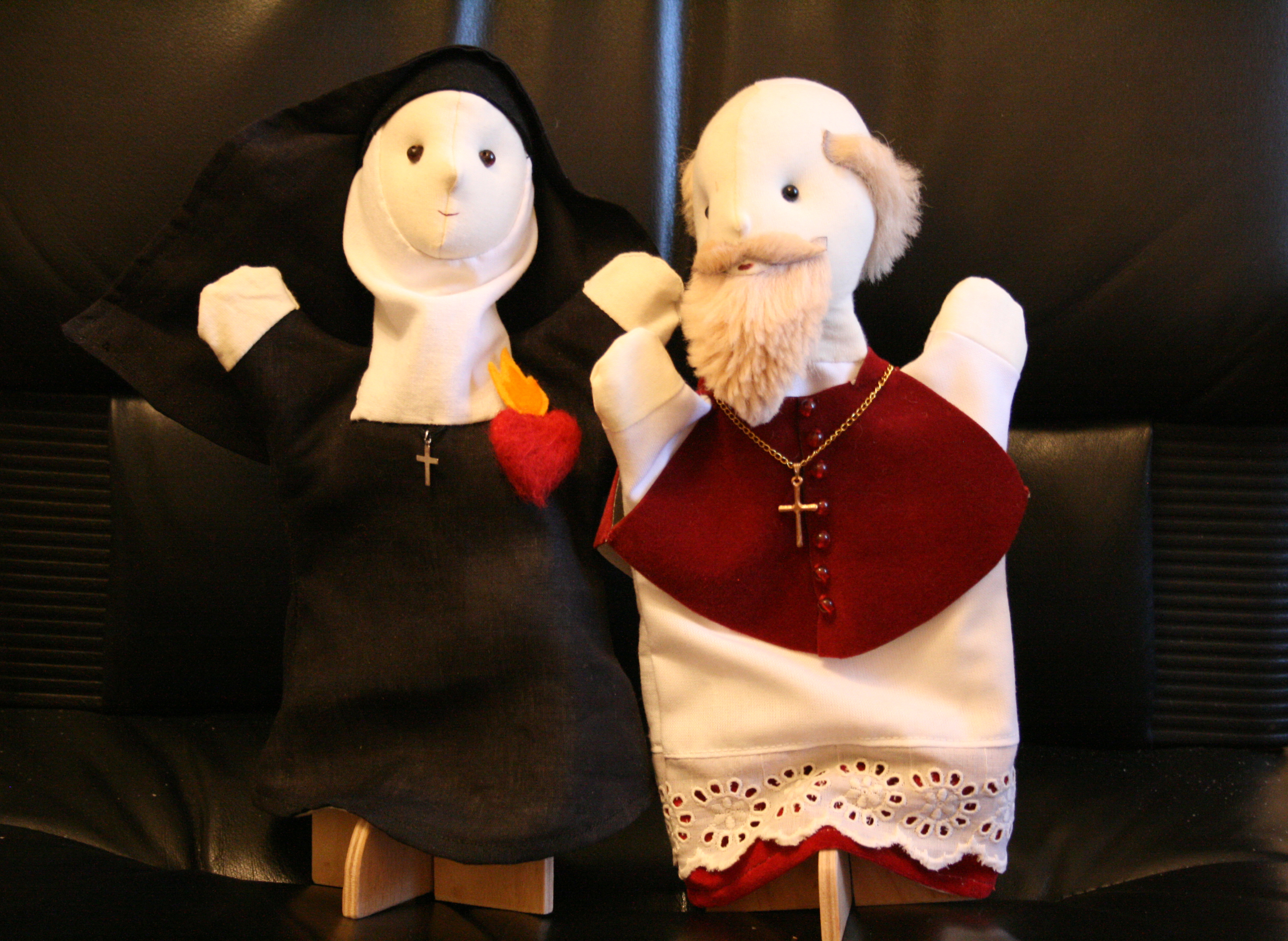 Johanna Franziska von Chantal und Franz von Sales, Handpuppen von Kuruczné Lovas Julia aus Ungarn, im Provinzialat Kaasgraben, Wien, Österreich