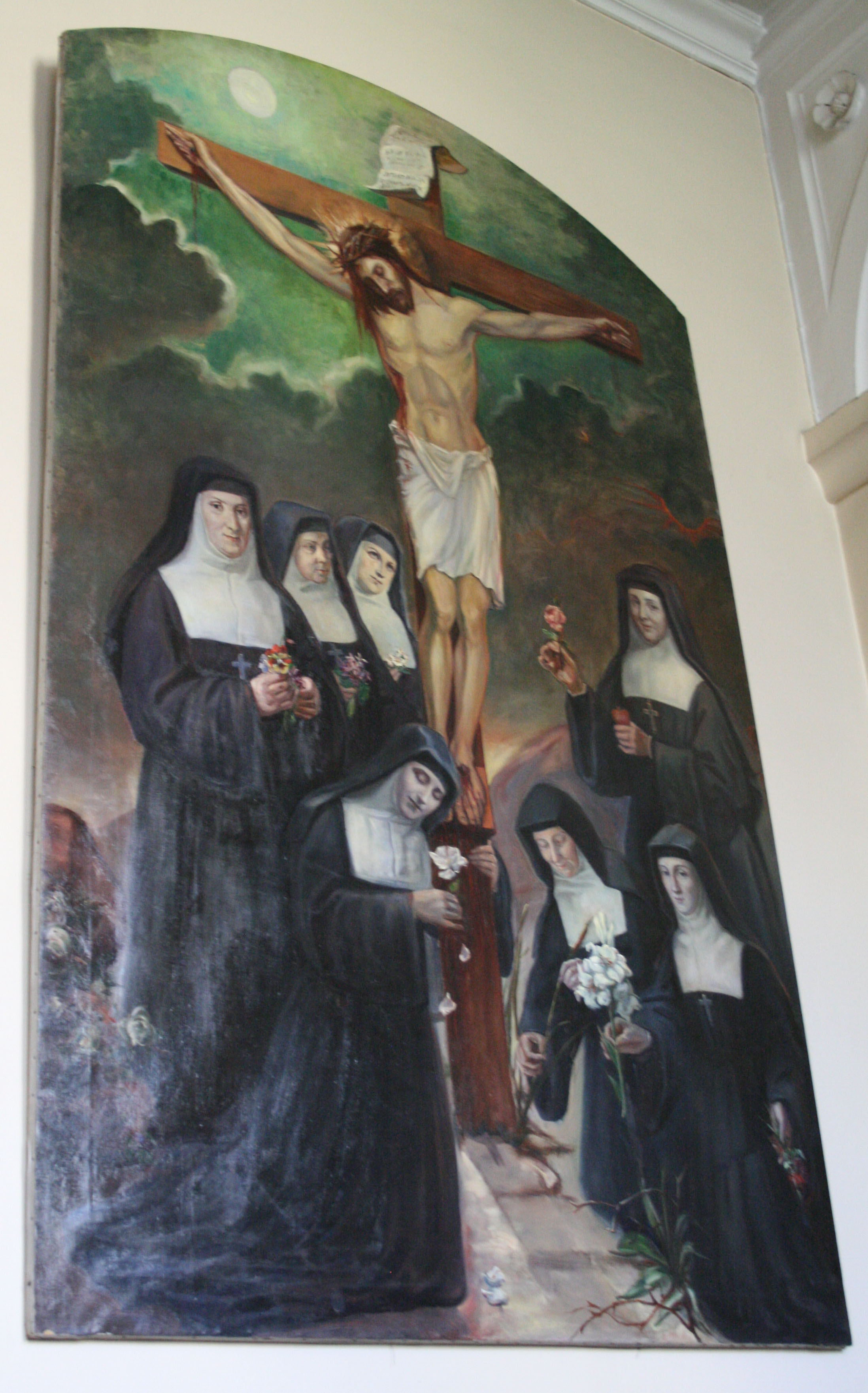 Heimsuchungsschwestern versammeln sich zu Füßen des Kreuzes. Gemälde im Heimsuchungskloster von Paris, Frankreich