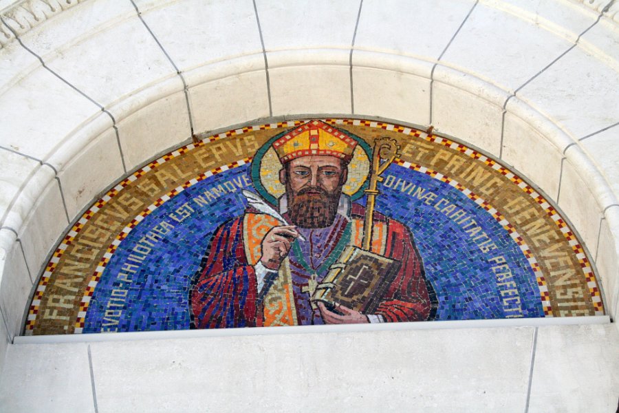 Mosaik über dem Eingang zur Pfarrkirche Franz von Sales in Genf, Schweiz