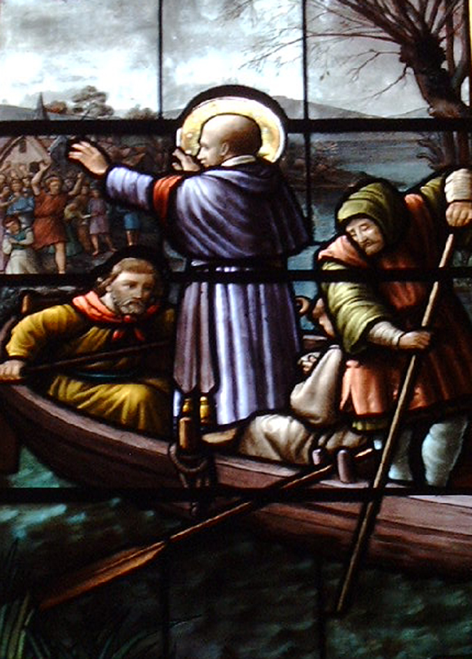 Franz überquert in Seysell die Rhone. Glasfenster in der Pfarrkirche von Seysell, Frankreich