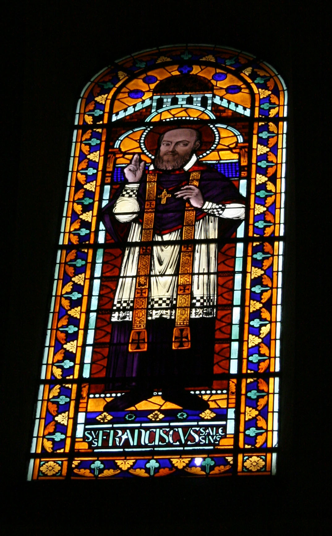 Glasfenster in der neuen Pfarrkirche Franz von Sales in Paris, Frankreich