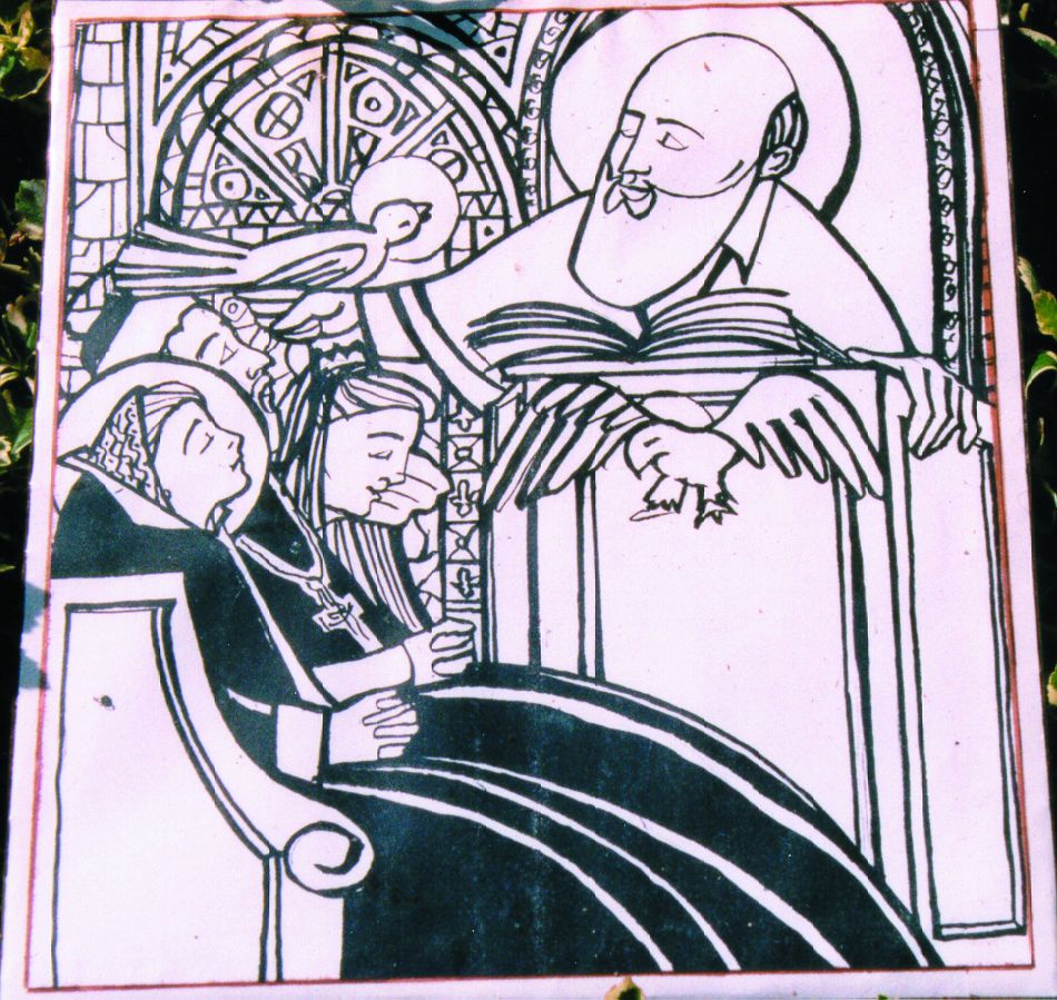 Franz von Sales begegnet Johanna Franziska von Chantal, Gemälde von Michael O'Neill McGrath osfs, Samarpanaram, Indien