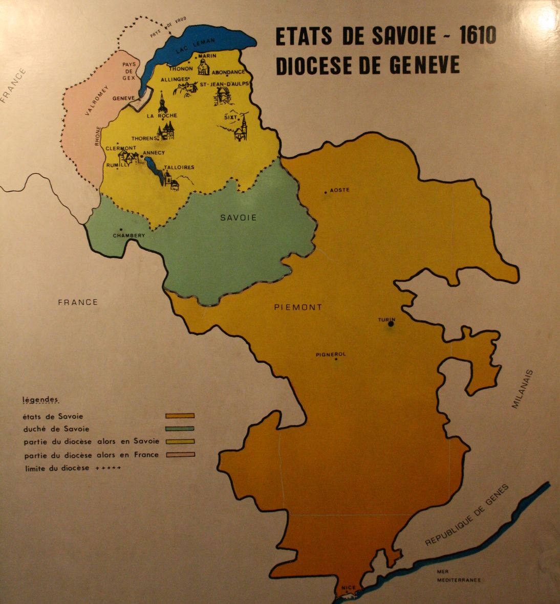 Landkarte der Diƶzese Genf-Annecy um das Jahr 1610, Museum der Heimsuchung in Annecy, Frankreich