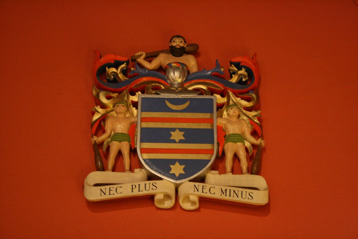 Familienwappen der Sales auf Schloss Sales in Thorens, Frankreich, mit Castor und Polux, den beiden Sternen im Sternbild der Zwillinge. das Familienmotto Nec plus, nec minus - nicht mehr und nicht weniger - änderte Franz von Sales für sein Bischofswappen in Non excidet - er sie es wird nicht untergehen.