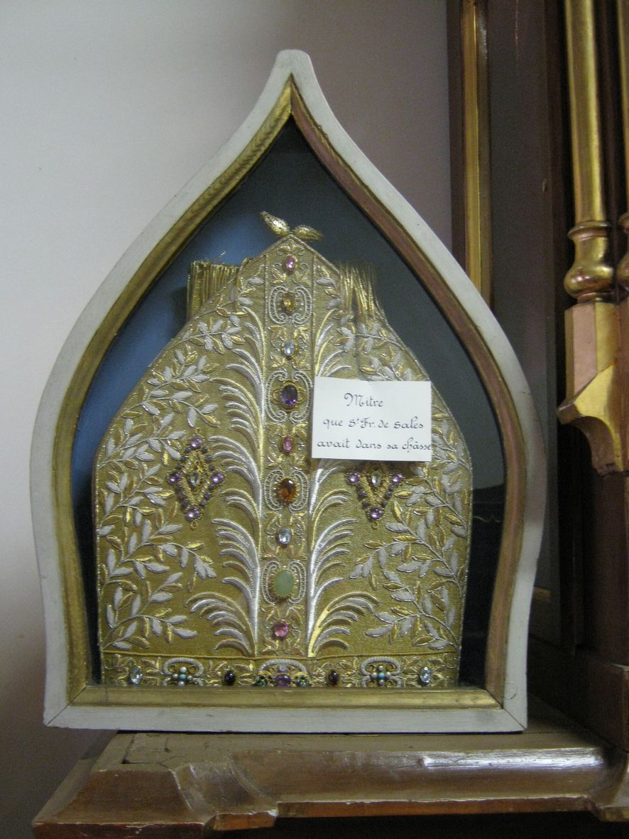 Mitra, die dem heiligen Franz von Sales gehörte. Heimsuchungskloster Annecy, Frankreich