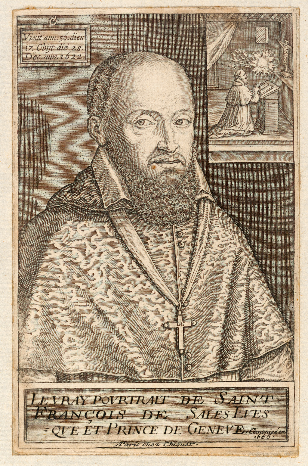 Stich aus dem Jahr 1624, zwei Jahre nach dem Tod des Franz von Sales, von Léonard Gaultier, Sammlung des Benediktinerklosters Stift Göttweig, Österreich