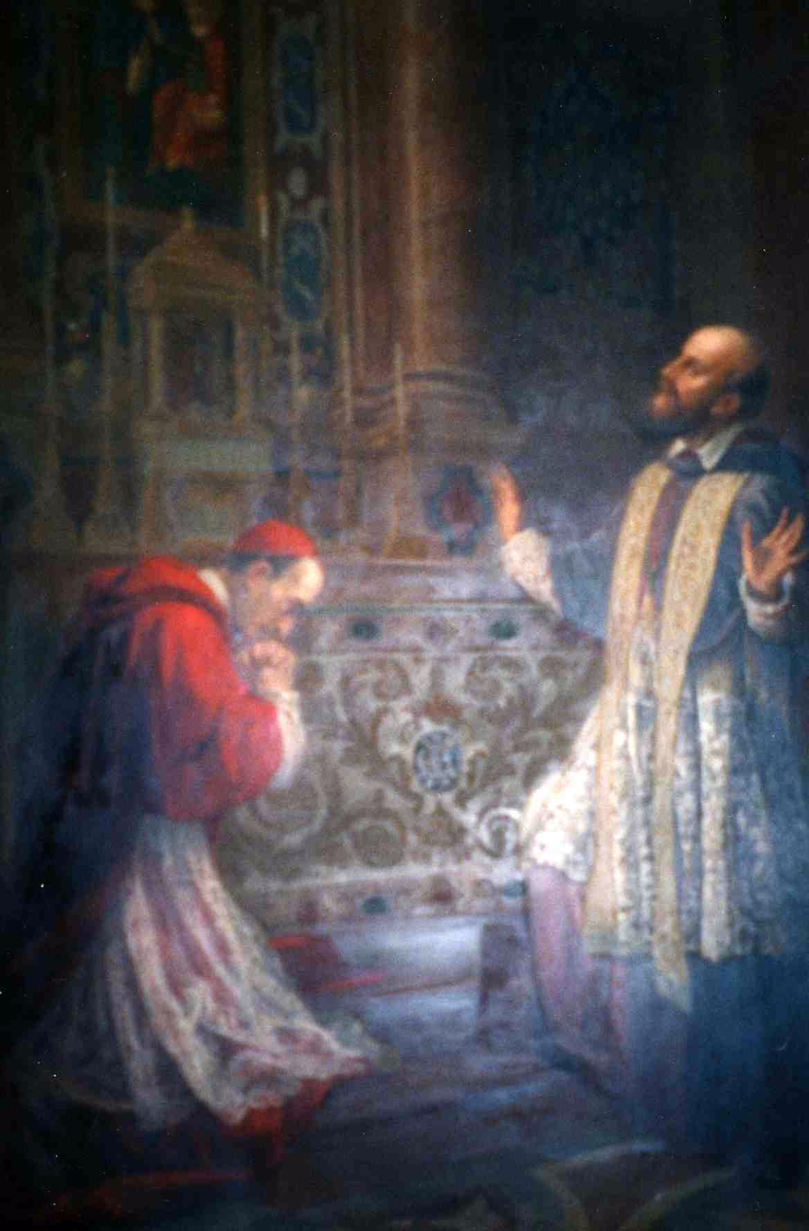 Franz von Sales und Karl Borromäus. Gemälde in der Kirche Maria Schmerzen in Turin, Italien