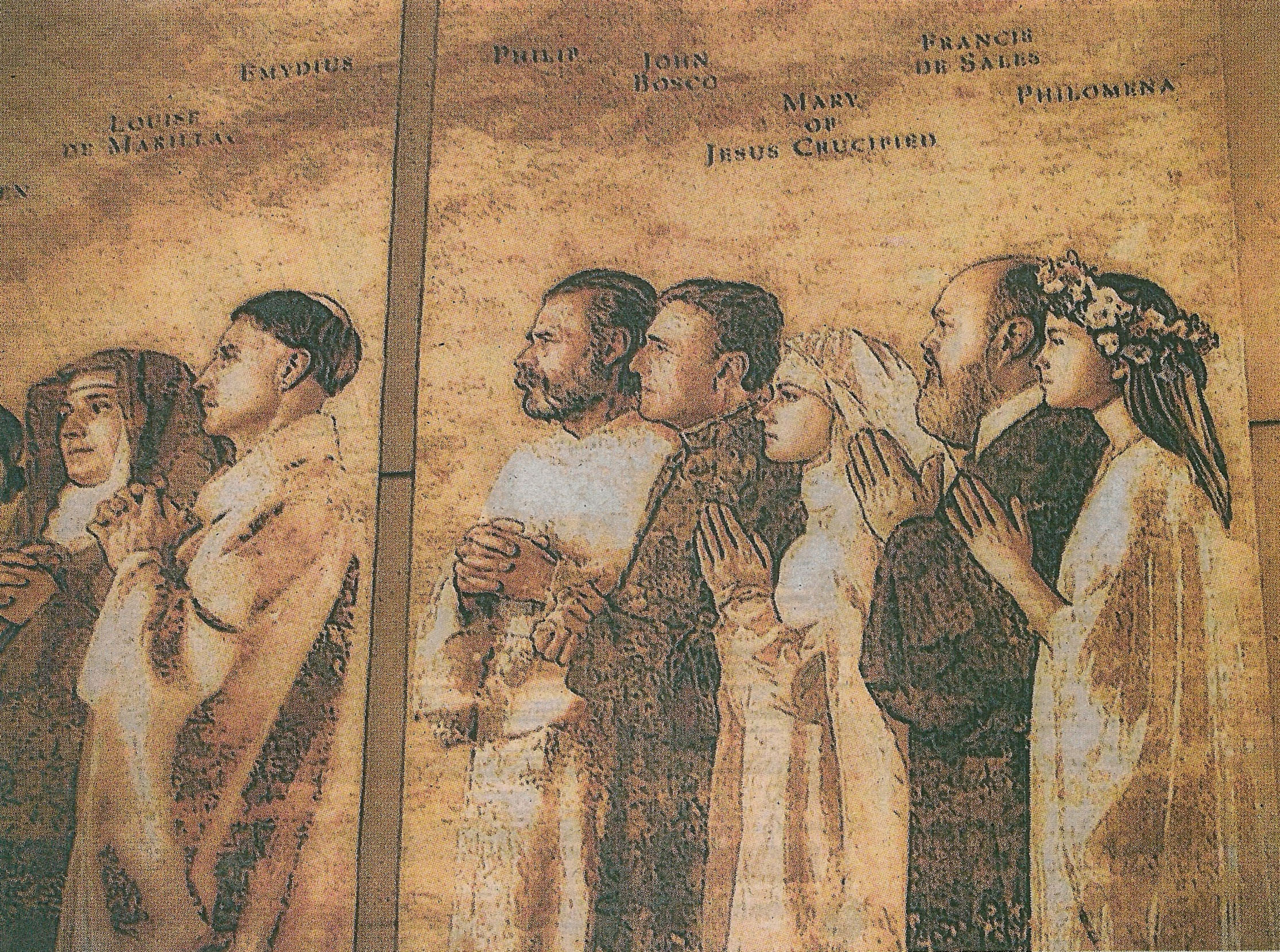 Franz von Sales (2. v. rechts) in der Gemeinschaft der Heiligen. Fresko von John Nava in der Kathedrale "Our Lady of Angels" Los Angeles, USA