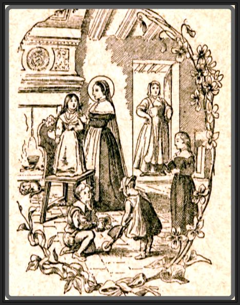 Johanna Franziska von Chantal musste nach dem Tod ihres Ehemannes mit ihren vier Kindern in das Schloss ihres Schwiegervaters nach Monthelon ziehen. Dort wurde sie von der Küchenmagd traktiert. Quelle unbekannt.