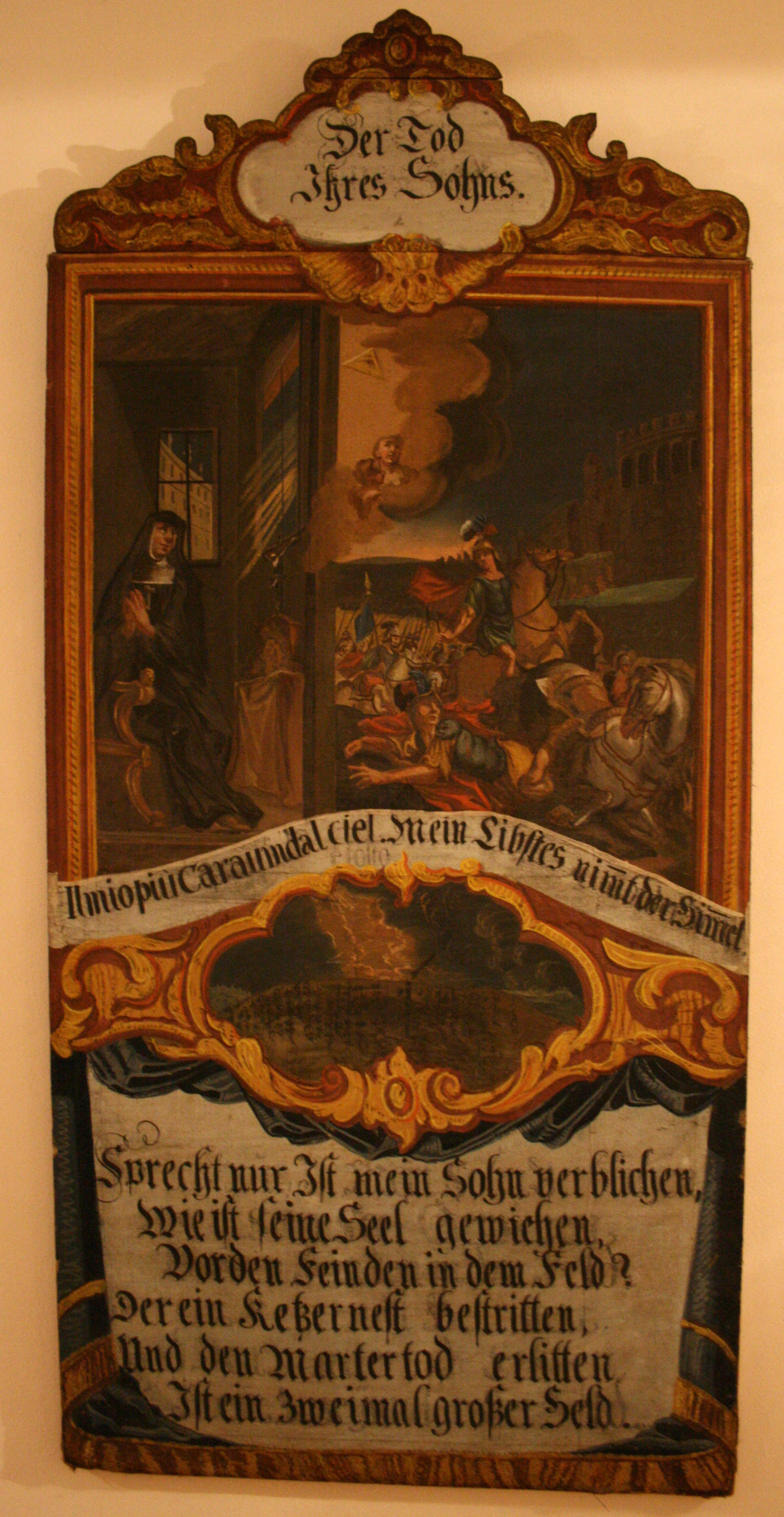 Der Tod ihres Sohnes, Gemälde von Franz Ignaz Schilling (1751) im Heimsuchungskloster Beuerberg, Bayern