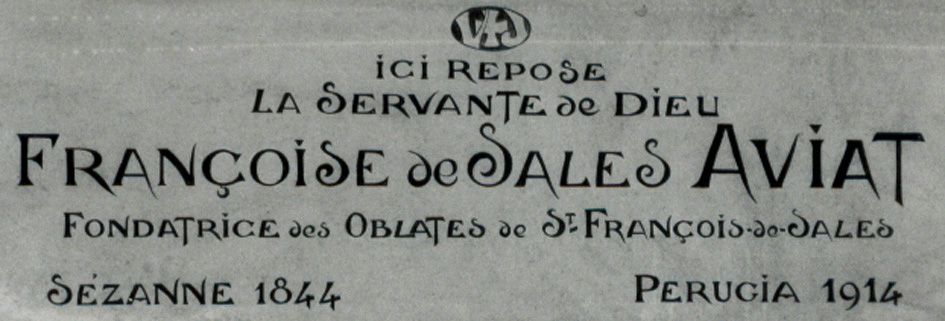 Grabstein in der Krypta des Mutterhauses der Oblatinnen des hl. Franz von Sales, Troyes, Frankreich