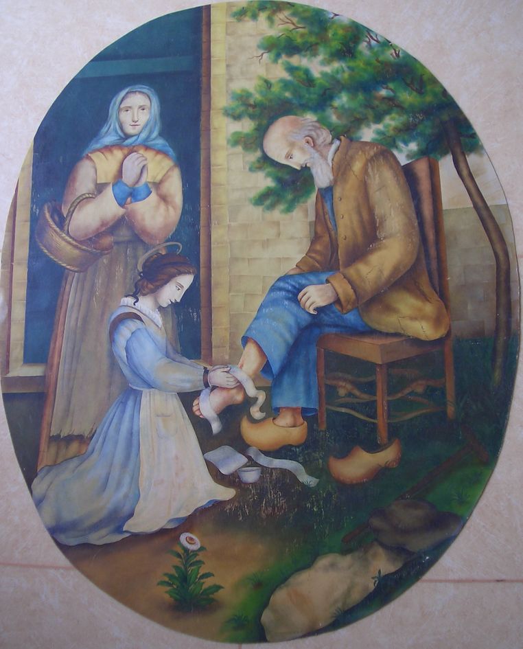 Margareta Maria Alacoque sorgt sich um die Not der Armen, Gemälde aus dem Heimsuchungskloster Paray-le-Monial, Frankreich