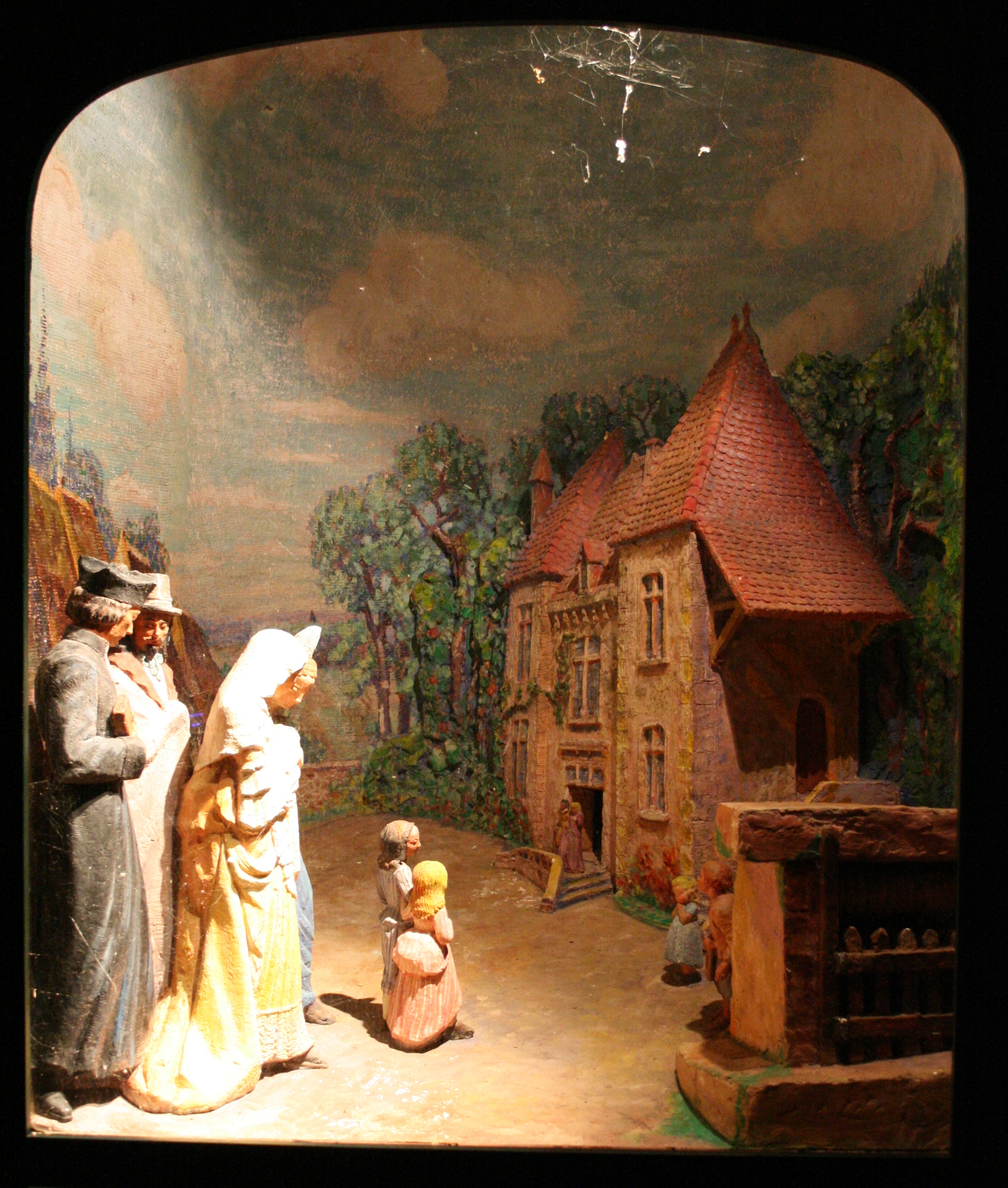 Margareta Maria Alacoque wird in Verosvres geboren und getauft, Aus: Das Leben der heiligen Margareta Maria Alacoque im Parc des Chaplains, Paray-le-Monial, Frankreich