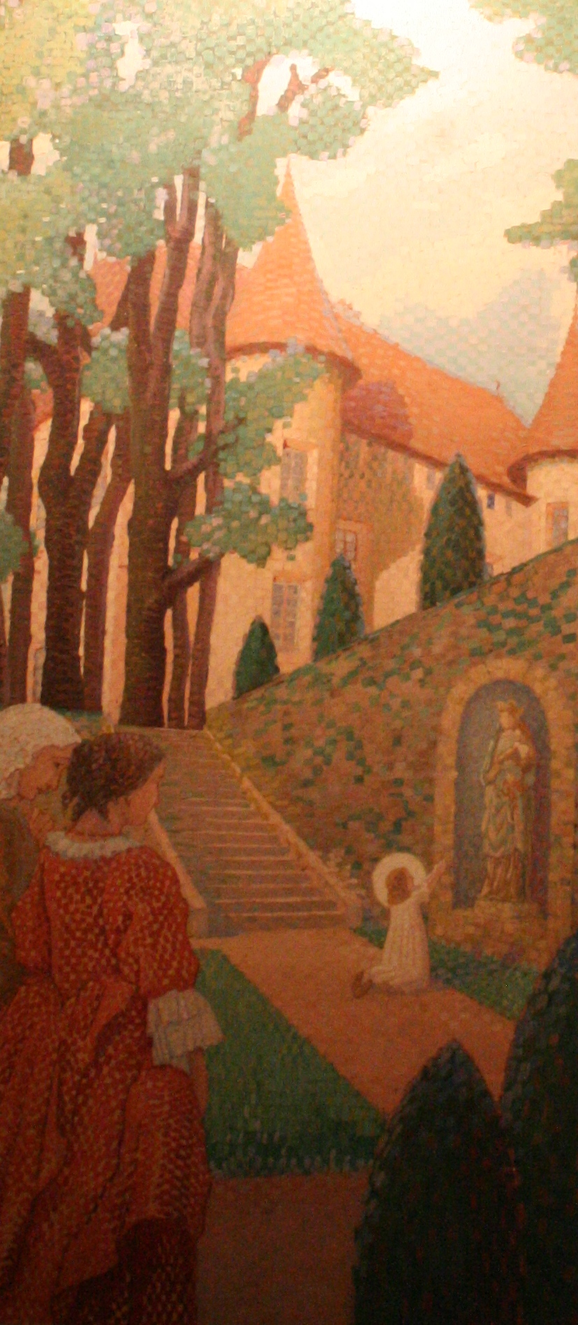 Margareta Maria Alacoque lebt einige Jahre im Schloss Corcheval bei ihrer Patin, Aus: Das Leben der heiligen Margareta Maria Alacoque im Parc des Chaplains, Paray-le-Monial, Frankreich