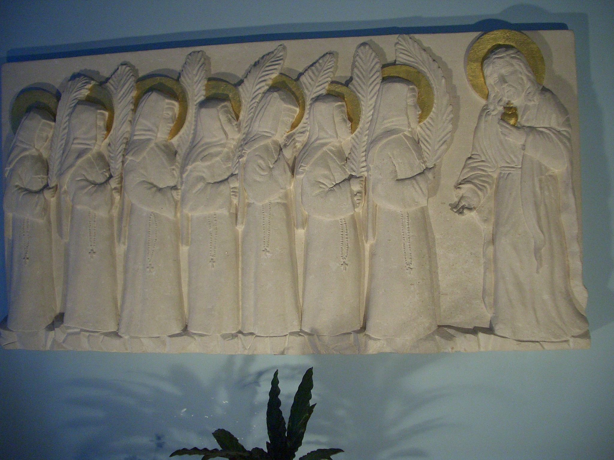 Die Sieben Heimsuchungsschwestern Märtyrerinnen von Madrid folgen dem Herzen Jesu, Relief im Heimsuchungskloster von Treviso, Italien