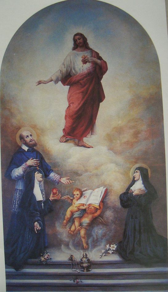 Margareta Maria Alacoque, Gemälde im Heimsuchungskloster Treviso, Italien. Links: Franz von Sales und Johanna Franziska von Chantal